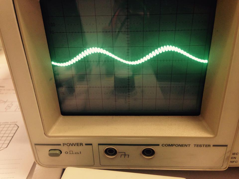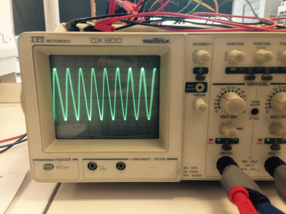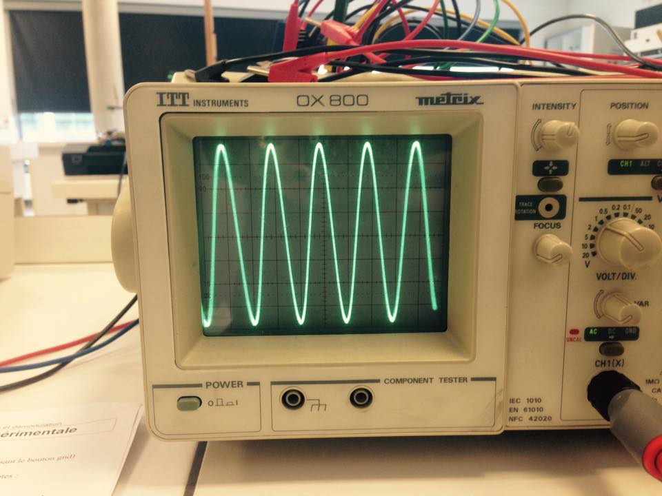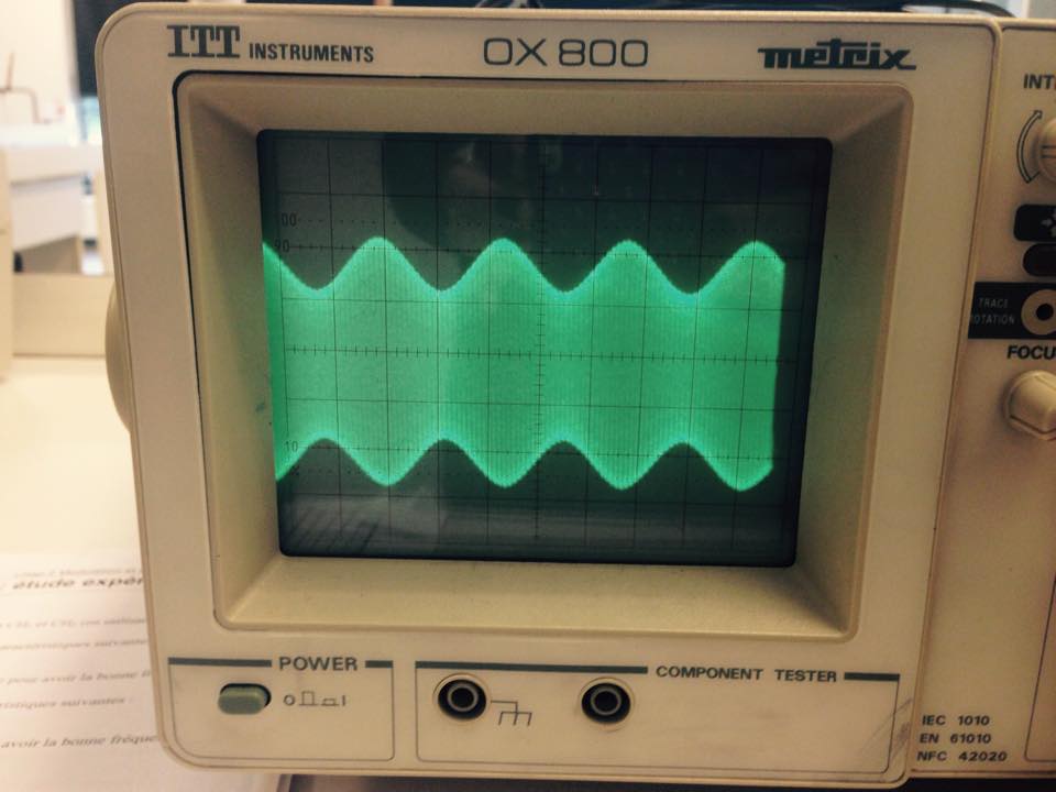 Nous avons pu réaliser les expériences de modulation et de démodulation. Grâce à des manipulations complexes nous avons pu obtenir différents signaux électriques sur l'oscilloscope au cours de l'expérience. Nous allons donc vous présenter quelques photographies de ces signaux particuliers.