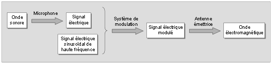 L’information à transmettre est donc contenue dans un signal électrique de basse fréquence.