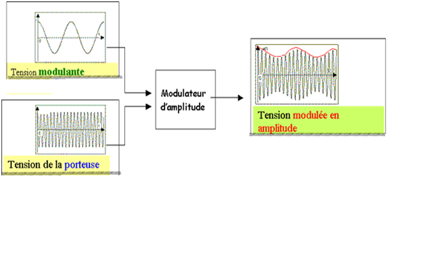 L’amplitude de l’onde porteuse est modulée par le signal électrique de basse fréquence.